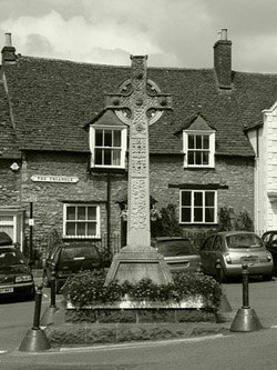 Leave the M4 at Junction 17 and head North on the A429 to Malmesbury. As you enter Malmesbury, turn left at the first roundabout signposted to town centre (please ignore the brown signs to Abbey House gardens, these are intended for coaches). At the top of the High Street you will see the Market Cross (pictured right). Turn left and follow the road past the Abbey to the War Memorial (pictured right). Turn right here and head down the hill, straight across the mini roundabout then turn right at the next roundabout, signposted to the long stay car park. |